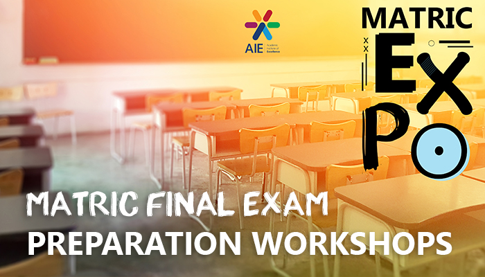 Welcome to the first annual AIE Matric Expo! We are very excited to be hosting the first such event of its kind. During this week we will be offering a series of events to aid matric learners and matric teachers such as: